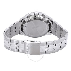 Vỏ thép không gỉ màu bạc và vòng đeo tay. Cố định viền thép không gỉ tông màu bạc. Quay số màu xanh với bàn tay tông màu bạc và điểm đánh dấu giờ. Điểm đánh dấu phút xung quanh vành ngoài. Loại quay số: Analog. Hiển thị ngày giữa vị trí 4 đến 5 giờ. Chronograph – Ba quay số phụ hiển thị: 60 phút, 60 giây, 24 giờ. Phong trào SEIKO CALIBER 8T63. Tinh thể cứng chống trầy xước. Trường hợp rắn trở lại. Hình dạng trường hợp tròn, kích thước trường hợp: 41,5 mm, Độ dày trường hợp: 12,1 mm. Chiều rộng băng tần: 22 mm. Gấp qua clasp với một bản phát hành an toàn. Kháng nước ở 100 mét / 330 feet. Chức năng: Chronograph, ngày, giờ, phút, thứ hai. Phong cách theo dõi thể thao. Nhãn đồng hồ: Nhật Bản Movt. Seiko Chronograph Quartz Blue Dial nam SSB427P1.