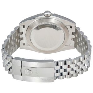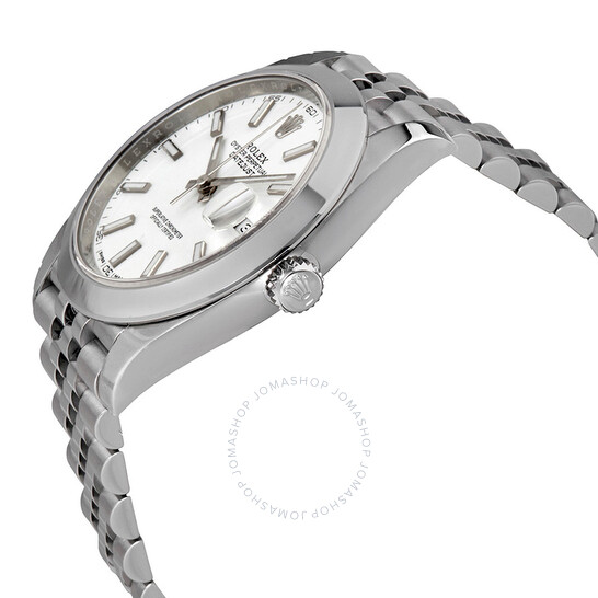 Vỏ thép không gỉ với vòng đeo tay Rolex bằng thép không gỉ. Cố định vezel thép không gỉ. Quay số trắng với bàn tay tông màu bạc và điểm đánh dấu giờ chỉ số. Điểm đánh dấu phút xung quanh vành ngoài. Loại quay số: Analog. Hiển thị ngày ở vị trí 3 giờ. Rolex Calibre 3235 Chuyển động tự động với dự trữ năng lượng 70 giờ. Tinh thể sapphire chống trầy xước. Vít xuống vương miện. Trường hợp rắn trở lại. Kích thước trường hợp: 41 mm. Hình dạng hình tròn. Che giấu vương miện clasp. Kháng nước ở 100 mét / 330 feet. Chức năng: Ngày, giờ, phút, thứ hai. Phong cách đồng hồ sang trọng. Nhãn xem: Thụy Sĩ làm. Rolex DateJust 41 Quay số trắng bằng thép không gỉ Jubilee Watch 126300wsj.