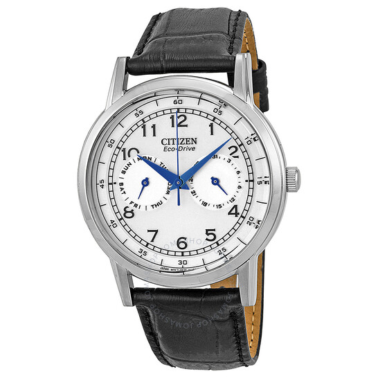 Eco-Drive Silver Dial Black Leather Men’s Watch