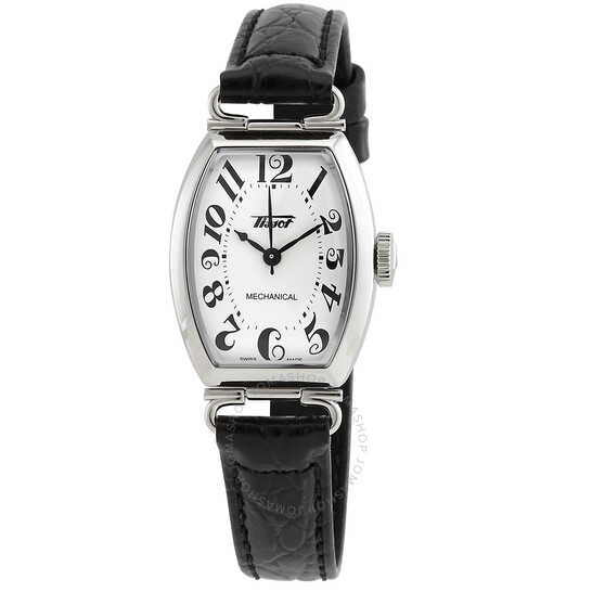 Vỏ thép không gỉ màu bạc với dây đeo bằng da màu đen. Cố định viền thép không gỉ tông màu bạc. Quay số trắng với bàn tay đen và các điểm đánh dấu số số tiếng Ả Rập. Điểm đánh dấu phút. Loại quay số: Analog. Chuyển động gió tay. Tinh thể sapphire chống trầy xước. Kéo / Đẩy vương miện. Trường hợp minh bạch trở lại. Hình dạng trường hợp Tonneau, Kích thước trường hợp: 30,1 mm x 22 mm, Độ dày trường hợp: 8,5 mm. Chiều rộng băng tần: 12 mm. Khóa clasp. Chống nước ở 30 mét / 100 feet. Chức năng: Giờ, phút, thứ hai. Sê -ri Di sản Porto. Phong cách đồng hồ ăn mặc. Nhãn xem: Thụy Sĩ làm. Tissot Di sản Porto Hand Wind White Dial Ladies Xem T128.161.16.012.00.