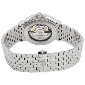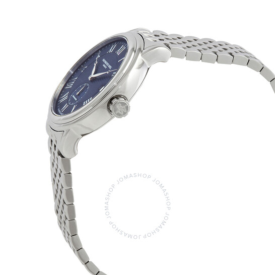 Vỏ thép không gỉ màu bạc và vòng đeo tay. Cố định viền thép không gỉ tông màu bạc. Quay số màu xanh với bàn tay tông màu bạc và điểm đánh dấu giờ của La Mã. Điểm đánh dấu phút xung quanh vành ngoài. Loại quay số: Analog. Hiển thị ngày ở vị trí 3 giờ. Tay nhỏ ở 6 oclock. Chuyển động tự động. Tinh thể sapphire chống trầy xước. Kéo / Đẩy vương miện. Hình dạng trường hợp tròn, kích thước trường hợp: 39 mm. Kháng nước ở 50 mét / 165 feet. Chức năng: Ngày, giờ, phút, thứ hai. Sê -ri Maestro. Nhãn xem: Thụy Sĩ làm. Raymond Weil Maestro Automatic Blue Dial Watch nam 2838-ST-00508.