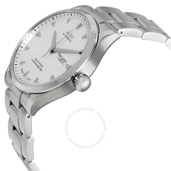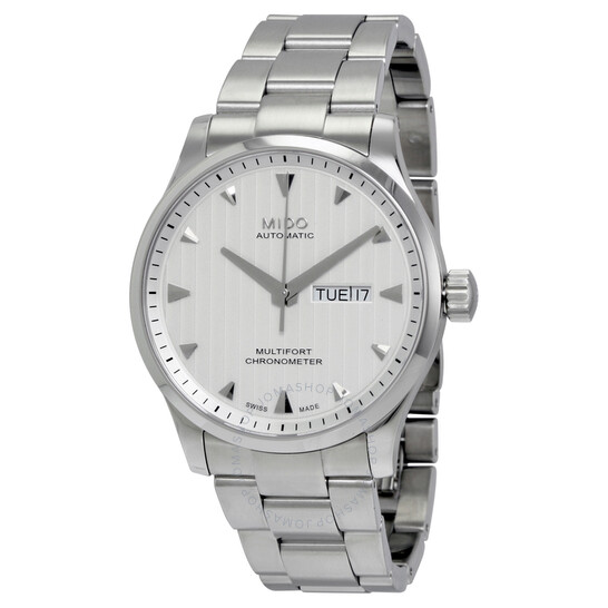 Vỏ thép không gỉ với một vòng đeo tay bằng thép không gỉ. Cố định viền thép không gỉ. Quay số bạc với bàn tay tông màu bạc và điểm đánh dấu giờ. Điểm đánh dấu phút xung quanh vành ngoài. Loại quay số: Analog. Ngày trong tuần và ngày hiển thị tại vị trí 3 giờ. Tính năng 80.621 Chuyển động tự động COSC với dự trữ năng lượng 80 giờ. Tinh thể sapphire chống trầy xước. Trường hợp minh bạch trở lại. Kích thước trường hợp: 42 mm. Độ dày trường hợp: 10,95 mm. Hình dạng hình tròn. Chiều rộng băng tần: 22 mm. Triển khai clasp. Kháng nước ở 100 mét / 330 feet. Chức năng: Ngày, ngày, giờ, phút, thứ hai. Phong cách đồng hồ thông thường. Nhãn xem: Thụy Sĩ làm. MIDO Multifort Automatic Dial Dial Watch M005.431.11.031.00.