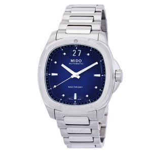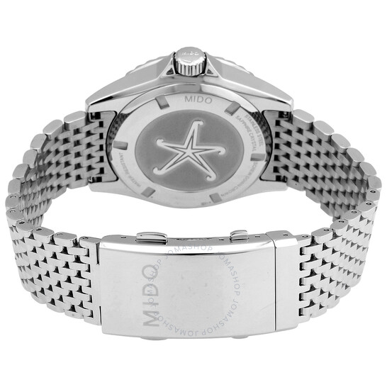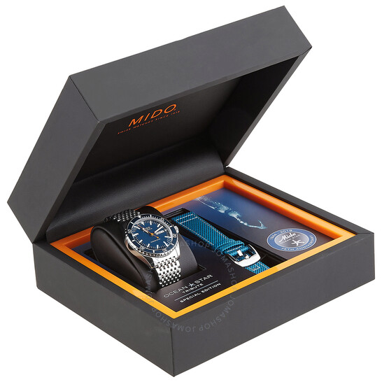 Vỏ thép không gỉ màu bạc và vòng đeo tay. Vòng thép không gỉ màu bạc xoay đơn hướng với vòng màu xanh dát. Quay số màu xanh với bàn tay tông màu bạc và điểm đánh dấu giờ. Điểm đánh dấu phút xung quanh vành ngoài. Loại quay số: Analog. Bàn tay phát quang. Ngày trong tuần và ngày hiển thị tại vị trí 3 giờ. Mido Calibre Powermatic 80 (ETA C07.621) Chuyển động tự động, dựa trên ETA 2824-2, chứa 23 trang sức, cắn ở mức 21600 VPH và có dự trữ năng lượng khoảng 80 giờ. Tinh thể sapphire chống trầy xước. Vít xuống vương miện. Trường hợp rắn trở lại. Hình dạng trường hợp tròn, Kích thước trường hợp: 40,5 mm, Độ dày trường hợp: 13,4 mm. Chiều rộng băng tần: 21 mm. Gấp qua clasp với một bản phát hành an toàn. Kháng nước ở 200 mét / 660 feet. Chức năng: Ngày, ngày, giờ, phút, thứ hai. Sê -ri Ocean Star. Phong cách theo dõi thể thao. Nhãn xem: Thụy Sĩ làm. Mido Ocean Star Automatic Dial Dial Men Watch M0268301104100.