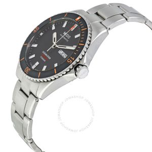 Vỏ thép không gỉ màu bạc và vòng đeo tay. Vòng thép không gỉ màu bạc xoay đơn hướng với vòng màu xanh dát. Quay số màu xanh với bàn tay tông màu bạc và điểm đánh dấu giờ. Điểm đánh dấu phút xung quanh vành ngoài. Loại quay số: Analog. Bàn tay phát quang. Ngày trong tuần và ngày hiển thị tại vị trí 3 giờ. Mido Calibre Powermatic 80 (ETA C07.621) Chuyển động tự động, dựa trên ETA 2824-2, chứa 23 trang sức, cắn ở mức 21600 VPH và có dự trữ năng lượng khoảng 80 giờ. Tinh thể sapphire chống trầy xước. Vít xuống vương miện. Trường hợp rắn trở lại. Hình dạng trường hợp tròn, Kích thước trường hợp: 40,5 mm, Độ dày trường hợp: 13,4 mm. Chiều rộng băng tần: 21 mm. Gấp qua clasp với một bản phát hành an toàn. Kháng nước ở 200 mét / 660 feet. Chức năng: Ngày, ngày, giờ, phút, thứ hai. Sê -ri Ocean Star. Phong cách theo dõi thể thao. Nhãn xem: Thụy Sĩ làm. Mido Ocean Star Automatic Dial Dial Men Watch M0268301104100.