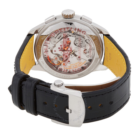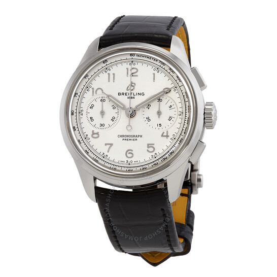 Vỏ thép không gỉ màu bạc với dây đeo bằng da cá sấu màu đen. Cố định viền thép không gỉ tông màu bạc. Quay số trắng với bàn tay tông màu bạc phát sáng và các điểm đánh dấu số số chỉ số-Ả Rập. Điểm đánh dấu phút xung quanh vành ngoài. Loại quay số: Analog. Bàn tay phát quang. Chronograph – Hai quay số phụ hiển thị: 60 giây và 30 phút. Breitling cỡ nòng B09 Chuyển động gió tay. Tinh thể sapphire chống trầy xước. Kéo / Đẩy vương miện. Minh bạch xem qua trường hợp trở lại. Hình dạng trường hợp tròn, Kích thước trường hợp: 40 mm, Độ dày trường hợp: 13 mm. Chiều rộng băng tần: 20 mm. Khóa triển khai clasp. Kháng nước ở 100 mét / 330 feet. Chức năng: Chronograph, giờ, phút, thứ hai. Thông tin bổ sung: hộp gốc, thủ công (phụ kiện hoàn chỉnh). Sê -ri Di sản Premier. Phong cách theo dõi thể thao. Nhãn xem: Thụy Sĩ làm. Breitling Premier B09 Di sản Chronograph 40mm tay tay quay số trắng unisex Xem ab0930371g1p1.