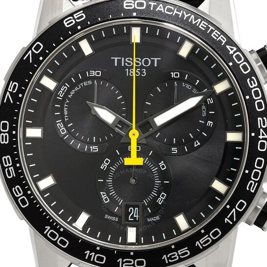 Vỏ thép không gỉ với dây đeo dệt màu đen. Đã cố định viền thép không gỉ với vòng nhôm màu đen dát cho thấy các dấu tốc thị. Mặt số màu đen với bàn tay đen sáng và điểm số chỉ số. Điểm đánh dấu phút xung quanh vành ngoài. Loại quay số: Analog. Bàn tay phát quang và điểm đánh dấu. Hiển thị ngày ở vị trí 6 giờ. Chronograph – Ba quay số phụ hiển thị: 60 giây, 30 phút và 1/10 của một giây. ETA calibre G10.212 Chuyển động Quartz. Tinh thể sapphire chống trầy xước. Trường hợp rắn trở lại. Hình dạng hình tròn. Kích thước trường hợp: 45,5 mm. Độ dày trường hợp: 11,9 mm. Chiều rộng băng tần: 22 mm. Tang clasp. Kháng nước ở 100 mét / 330 feet. Chức năng: Đồng hồ bấm giờ, Rattrapante, Ngày, Giờ, Phút, Thứ hai Nhỏ. Sê-ri T-Sport. Phong cách theo dõi thể thao. Nhãn xem: Thụy Sĩ làm. Tissot T-Sport Chronograph Quartz Black Dial Đồng hồ nam T125.617.17.051.02.