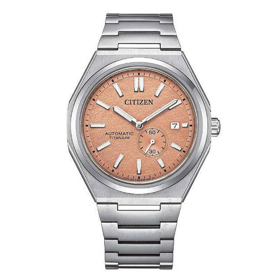 Vỏ Super Super Titan và Vòng đeo tay. Đã sửa lỗi Super Super Titan BEZEL. Quay số cá hồi với bàn tay tông màu bạc và điểm đánh dấu giờ chỉ số. Điểm đánh dấu phút xung quanh vành ngoài. Loại quay số: Analog. Bàn tay phát quang và điểm đánh dấu. Hiển thị ngày ở vị trí 3 giờ. Một màn hình hiển thị phụ: Thứ hai nhỏ. Citizen Calibre 8213 Chuyển động tự động với dự trữ năng lượng 42 giờ. Tinh thể sapphire chống trầy xước. Minh bạch xem qua trường hợp trở lại. Hình dạng trường hợp tròn, Kích thước trường hợp: 40,5 mm, Độ dày trường hợp: 11 mm. Gấp qua clasp với một bản phát hành an toàn. Kháng nước ở 100 mét / 330 feet. Chức năng: Ngày, giờ, phút, giây nhỏ. Sê -ri Zenshin. Phong cách theo dõi thể thao. Citizen Zenshin Automatic Salmon Dial Dial Watch NJ0180-80Z.