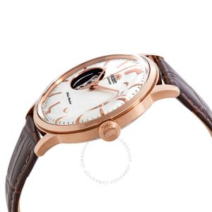 Vỏ thép không gỉ với dây đeo bằng da màu nâu. Cố định viền thép không gỉ. Quay số trắng với bàn tay tông màu bạc và điểm đánh dấu giờ chỉ số. Điểm đánh dấu phút xung quanh vành ngoài. Loại quay số: Analog. Hiển thị ngày ở vị trí 3 giờ. Phương Đông Calibre F6724 Chuyển động tự động với dự trữ năng lượng 40 giờ. Tinh thể khoáng chất chống trầy xước. Hình dạng hình tròn. Kích thước trường hợp: 40,5 mm. Độ dày trường hợp: 11,8 mm. Chiều rộng băng tần: 21 mm. Tang clasp. Chống nước ở 30 mét / 100 feet. Chức năng: Ngày, giờ, phút, thứ hai. Phong cách đồng hồ thông thường. Nhãn đồng hồ: Nhật Bản Movt. Phương Đông thế hệ thứ 2 Bambino tự động quay số trắng đồng hồ nam FAC00005W0.